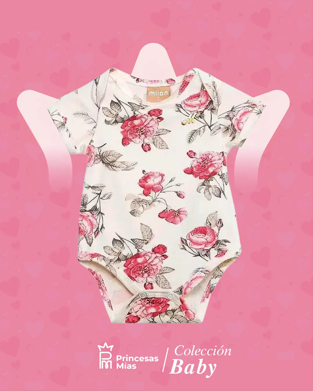 Body Milon Rosas de Manga Corta 14301. Body Milon para bebé niña, confeccionado en algodón, presenta un estampado integral, hombros superpuestos y cierres a presión en la entrepierna. Composición: 96 % algodón, 4 % elastano. SOBRE LA TIENDA