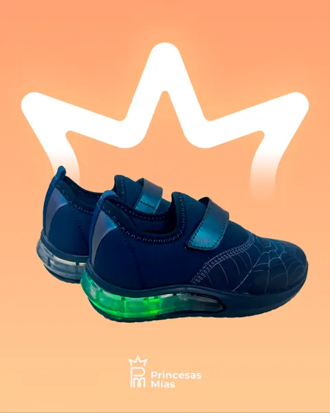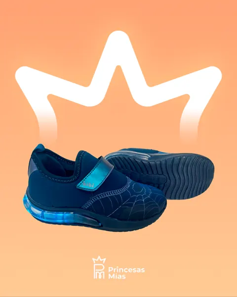 os tenis infantiles Space Wave están fabricados con materiales de alta calidad que garantizan comodidad y durabilidad. Su suela especial cuenta con luces LED que se iluminan con cada paso, haciendo que caminar sea una experiencia divertida para los más pequeños. El diseño incluye un estampado vibrante de telaraña, ideal para estimular la imaginación de los niños y ofrecer un estilo único. Además, incorpora la plantilla Fisioflex, que proporciona una sensación similar a caminar descalzo, promoviendo el desarrollo natural del pie.