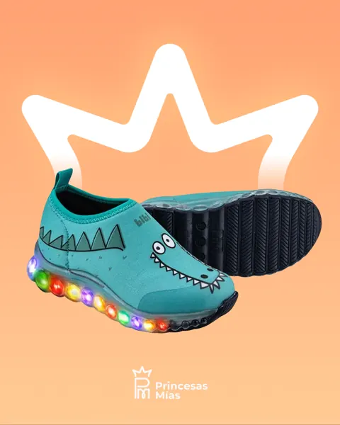¡Diversión asegurada en cada paso! Este modelo de tenis Bibi está inspirado en el mundo jurásico, con un simpático diseño de dinosaurio que fascina a los más pequeños. Su suela con luces LED multicolores parpadea con cada movimiento, haciendo que caminar o correr se vuelva una aventura luminosa. El calzado se adapta con suavidad al pie gracias a su tejido elástico tipo slip-on, ideal para un calce práctico y cómodo. Características destacadas: Diseño exclusivo con rostro de dinosaurio y detalles gráficos. Suela transparente con luces LED multicolores que se activan al caminar. Construcción en material elástico que se adapta fácilmente al pie. Plantilla Fisioflex: comodidad extrema que simula caminar descalzo. Suela de goma flexible, liviana y antideslizante. Fácil de calzar, sin cordones ni cierres.