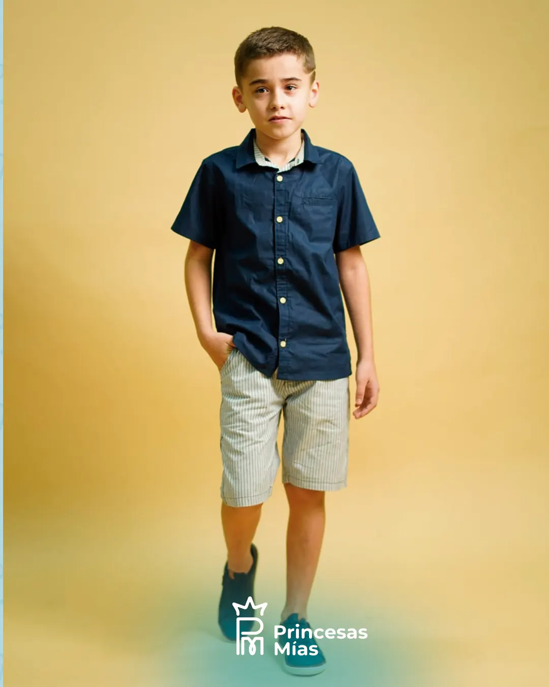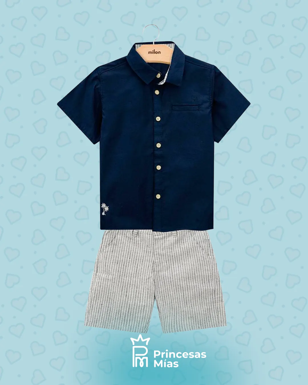 El conjunto Milon para niño consta de una camisa de algodón y pantalones cortos de sarga. La camisa Milon para niño tiene un corte tradicional, un bolsillo en el pecho, detalles bordados y botones en la parte delantera. Los pantalones cortos Milon para niño presentan rayas teñidas en hilo, bolsillos funcionales y cinturilla abotonada. Composición: 100 % algodón. Conjunto de camisa y pantalón corto para niño Milon