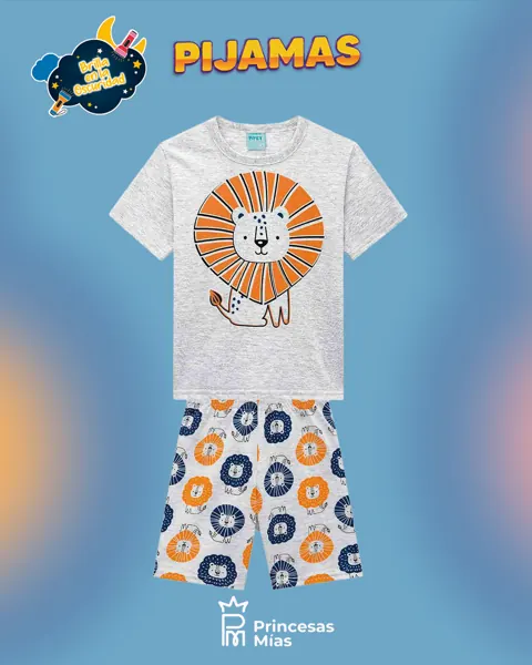 Un pijama súper tierno y cómodo para que las noches sean más divertidas. Set de 2 piezas con remera gris jaspe y short estampado de leoncitos en tonos naranja y azul. Y el detalle más lindo: ¡brilla en la oscuridad! 🌙 Detalles del producto Set 2 piezas: remera manga corta + short Efecto glow: el diseño se ilumina en la oscuridad ✨ Color gris jaspe (combinable y práctico) Short con cintura elástica para un ajuste cómodo Ideal para verano y vacaciones: livianito y fresquito Cómo activar el brillo Cargalo con luz (sol o lámpara) unos minutos y al apagar… ¡magia! 🌟
