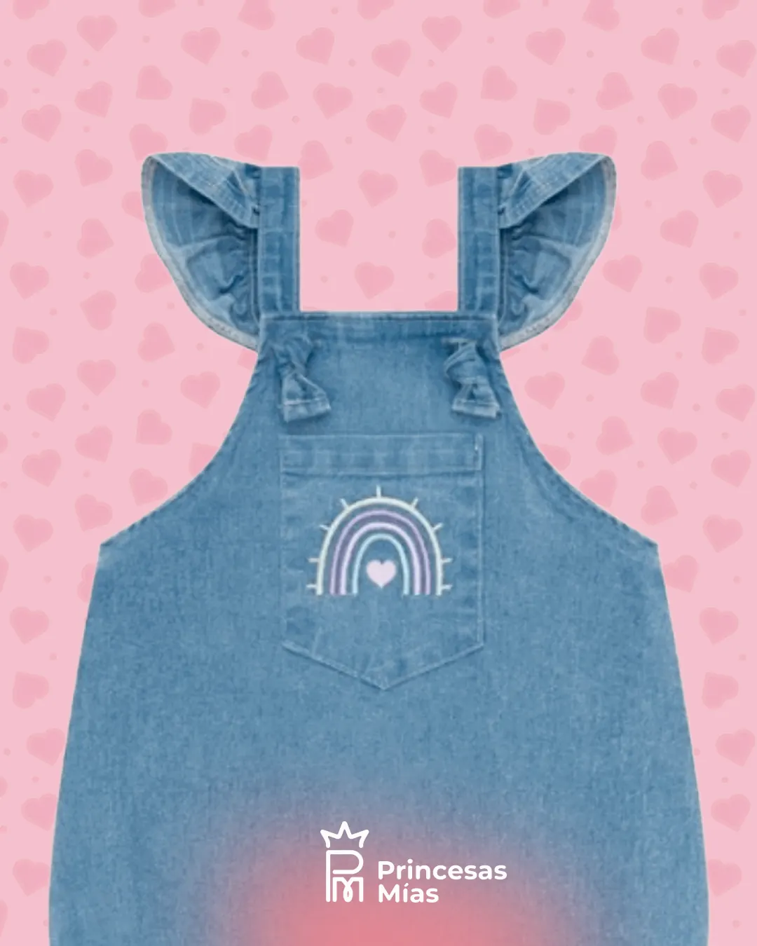 Enterito de jean suave con elastano para bebé, ideal para acompañar sus primeras aventuras con mucha comodidad. 💙 Con breteles con volados y calce amplio, es perfecto para que tu peque se mueva, gatee y juegue sin molestias. El detalle bordado de arcoíris con corazoncito en el bolsillito frontal aporta ese toque tierno que hace que el look sea aún más especial. Detalles que enamoran: Jean liviano y suave con elastano, cómodo para la piel del bebé. Breteles con volados que enmarcan la pechera. Bolsillo frontal con bordado de arcoíris y corazón. Piernas con elástico y broches a presión en la entrepierna para facilitar el cambio de pañal.