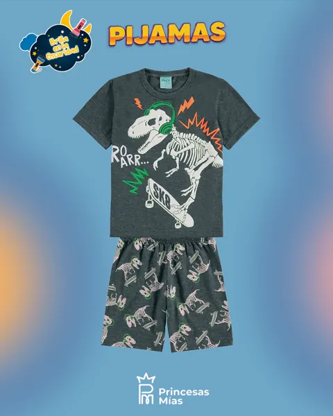 La pijama Kyly para niño consta de una camiseta y un pantalón corto de punto jersey. La camiseta Kyly para niño tiene un corte clásico y un estampado de dinosaurio en la parte delantera con detalles en relieve que brillan en la oscuridad. Los pantalones cortos Kyly para niño tienen un estampado integral a juego con la camiseta y una cómoda cinturilla elástica.