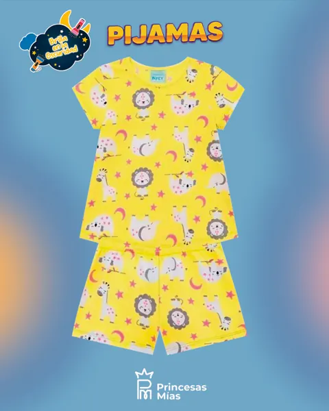 Pijama con animalitos y efecto glow. Suave, cómodo y hermoso para noches de verano. Descripción completa: Set de 2 piezas con diseño lleno de ternura (animalitos, estrellitas y lunas) y detalles que brillan en la oscuridad. Tela suave al tacto y calce cómodo para descansar feliz. Detalles: Set 2 piezas Detalles con efecto glow Cintura elástica Ideal para calor