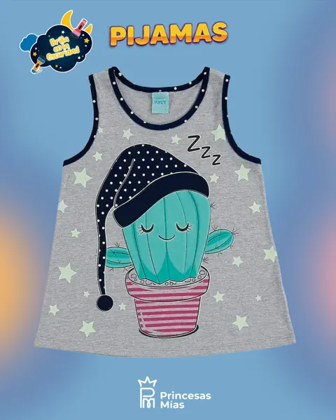 Con un adorable estampado, la pijama Kyly Cactus Junior garantiza comodidad para el descanso. Hecha de algodón, incluye una camiseta sin mangas y un pantalón corto. ¡Tu pequeña siempre lucirá hermosa y se sentirá cómoda! Brilla en la Oscuridad.