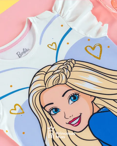 Camiseta para niña. Camiseta cuello redondo, manga corta -tela jersey para mayor frescura y suavidad -cuello con elongación para facilitar el paso de la cabeza Color: Blanco. Con diseño de Barbie. Licencia oficial de Barbie. Material: componente: camiseta iconica , composición: 99% algodón, 1% elastano. Detalle especial: estampado con mirella. Una prenda pensada para la comodidad de los niños.