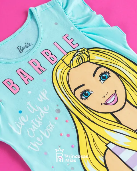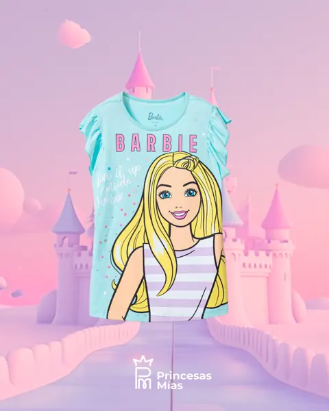 ¡Sé lo que quieras ser! Una colección para que todas las niñas valientes y extrovertidas dejen volar su imaginación. Con este diseño tu pequeña estará lista para cumplir todos sus sueños como su mejor amiga, Barbie. Con manga corta para más comodidad y un estampado que combinará con todo. 99% Algodón 1% Elastano