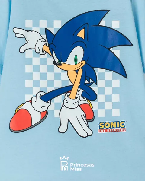 Remera infantil con estampado frontal de Sonic, el erizo más rápido y divertido del mundo. Perfecta para niños con espíritu aventurero y fanáticos de los videojuegos clásicos. Características / Beneficios destacados: Color azul cielo vibrante y alegre. Estampado de Sonic con fondo cuadriculado de estilo retro. Cuello redondo reforzado y manga corta. Tela fresca y suave al tacto, ideal para todo el día. Corte recto que se adapta a distintos tipos de cuerpo infantil. Material: 100% algodón