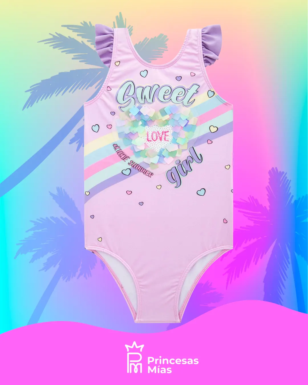Traje de baño infantil Kukiê - Composición Presentamos el traje de baño infantil Kukiê, la elección perfecta para garantizar estilo, comodidad y practicidad para tu princesita en todas las ocasiones de verano. - Traje de baño en tejido de punto con protección UV | 75% Poliéster | 25% Elastano |