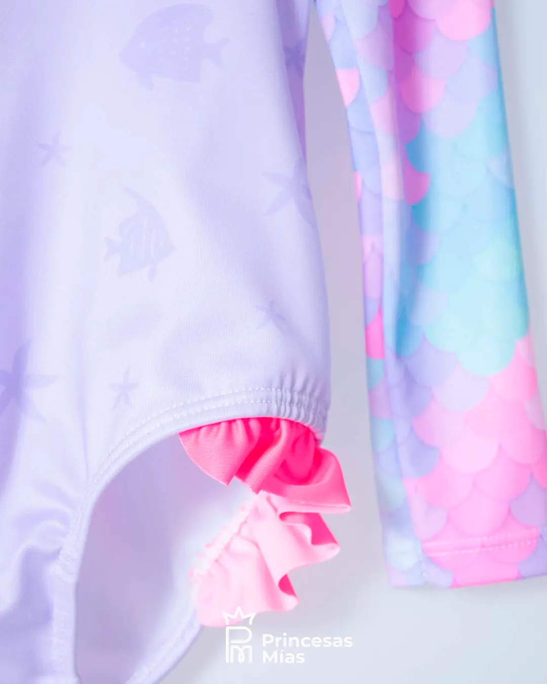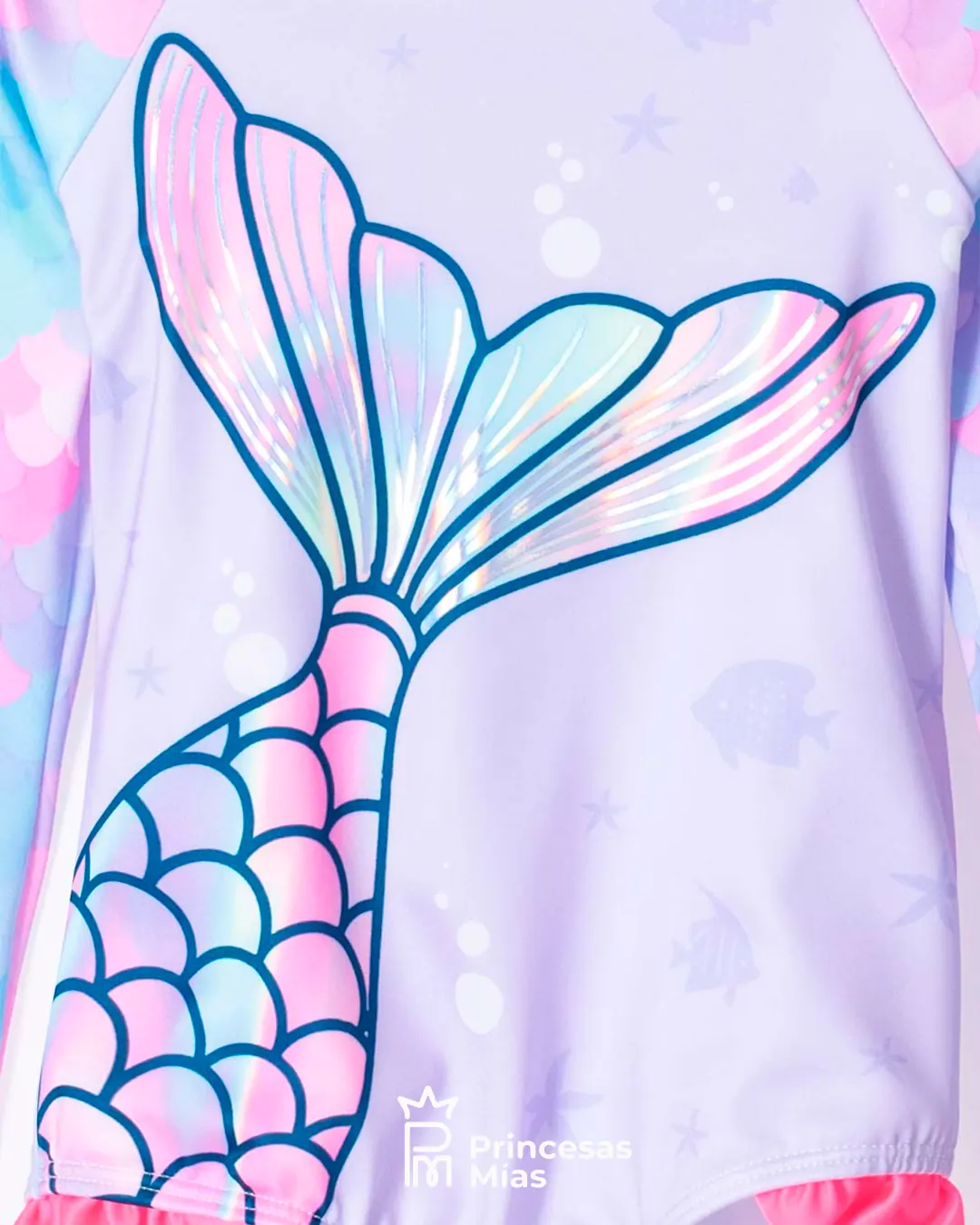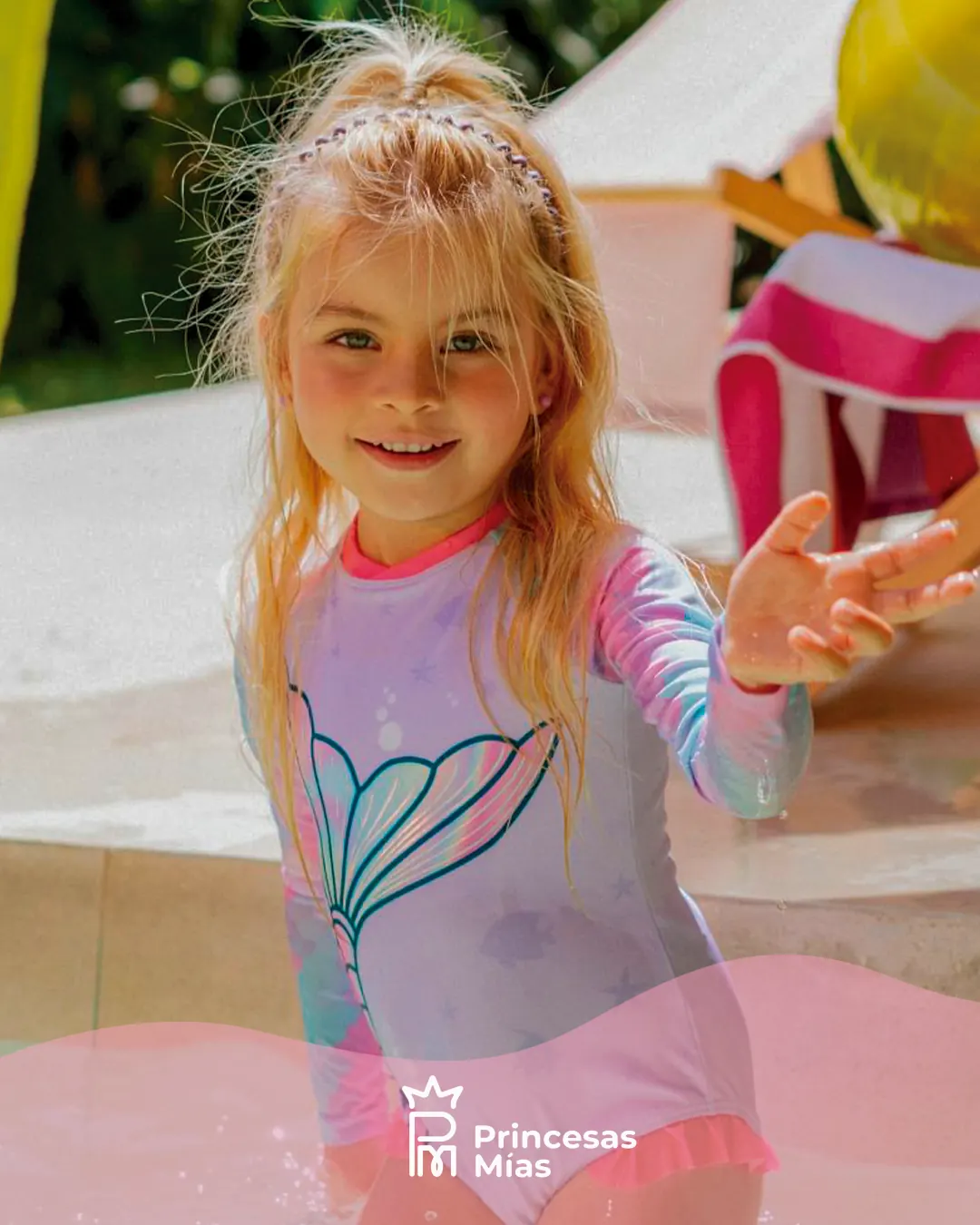 ¡Historias bajo el mar! Los días de sol harán que tu pequeña no vea la hora de disfrutar y querer lucir espectacular con este diseño tan tierno y precioso. Su estilo manga larga con ajuste de cierre en espalda le dará la protección que necesita para sus vacaciones de verano. Además, tiene mini boleros en pierna que le dan un toque fantástico, mientras que su estampado te dejará sin palabras.
