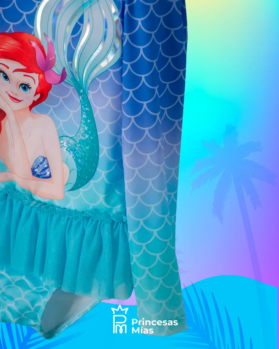 Bajo el mar, todo es mejor... ¡y con este traje de baño, también en la piscina! Con el diseño perfecto para que tu pequeña disfrute de las vacaciones y boleros que se mueven al ritmo de las olas, este traje de baño hará que tu niña se sienta como una princesa al nivel de La Sirenita. ¡Que comiencen las aventuras acuáticas! Y cuenta con Protección Solar UV 50. Composición: 88% Poliéster 12% Elastano Forro: 90% Poliéster 10% Elastano