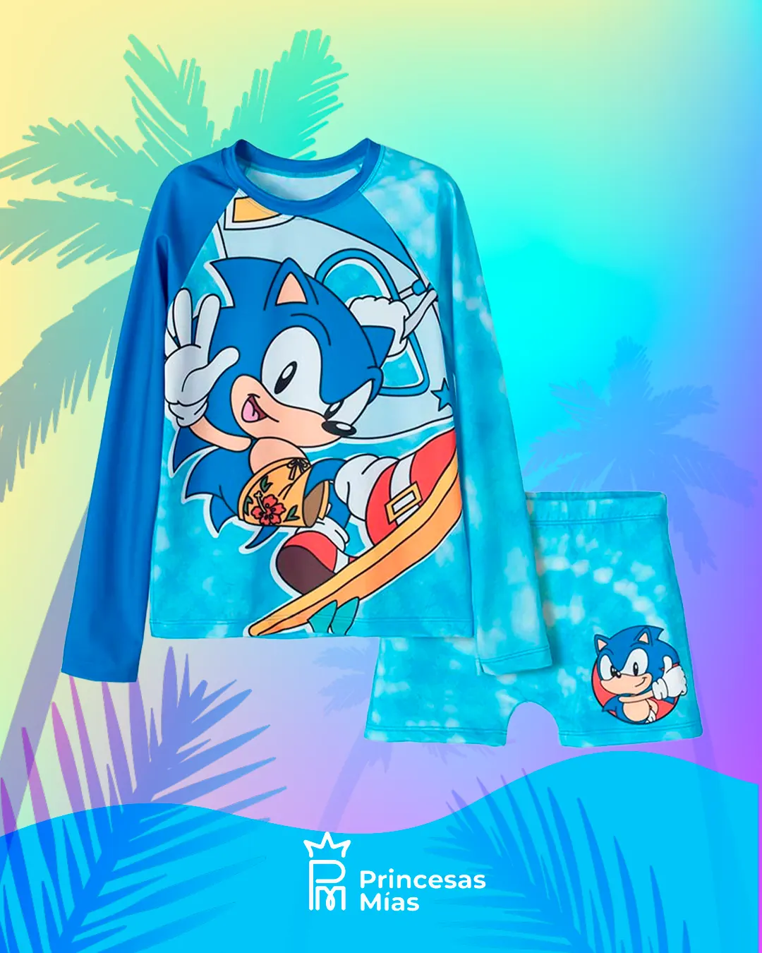 ¡Que la velocidad de Sonic acompañe cada chapuzón! Este conjunto de baño trae toda la energía del erizo más rápido del mundo con un estampado vibrante que captura su espíritu aventurero. La camiseta de manga raglan y el boxer coordinado están diseñados en materiales de secado rápido que permiten pasar del agua a la diversión sin parar, mientras que el cuello elongado facilita el cambio de ropa después de cada aventura acuática. Camiseta: 85% poliéster, 15% elastano, forro: 87% poliéster, 13% elastano Boxer: 85% poliéster, 15% elastano, forro: 87% poliéster, 13% elastano