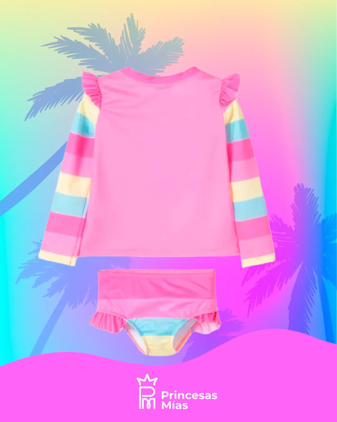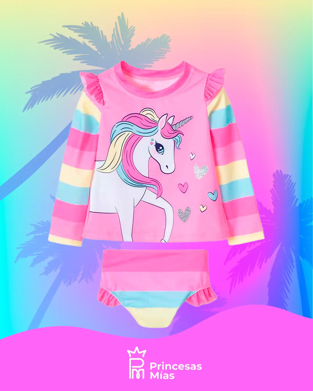 Criaturas fantásticas que siempre le dan un toque mágico a los días de tu pequeña, ¡en qué más podemos pensar si no son lo unicornios! Prepárate porque con este vestido de baño, tu consentida no querrá salir del agua jamás. Su diseño en dos piezas es perfecto para disfrutar de una comodidad única, mientras juega en parques y toboganes. Cuenta con detalles de mini boleros que harán de este conjunto, una opción tierna y encantadora, y además, sus estampados coloridos y apliques con brillo, difícilmente, pasarán desapercibidos. ¡Haz que tu pequeña sea la mejor vestida en los planes de verano!