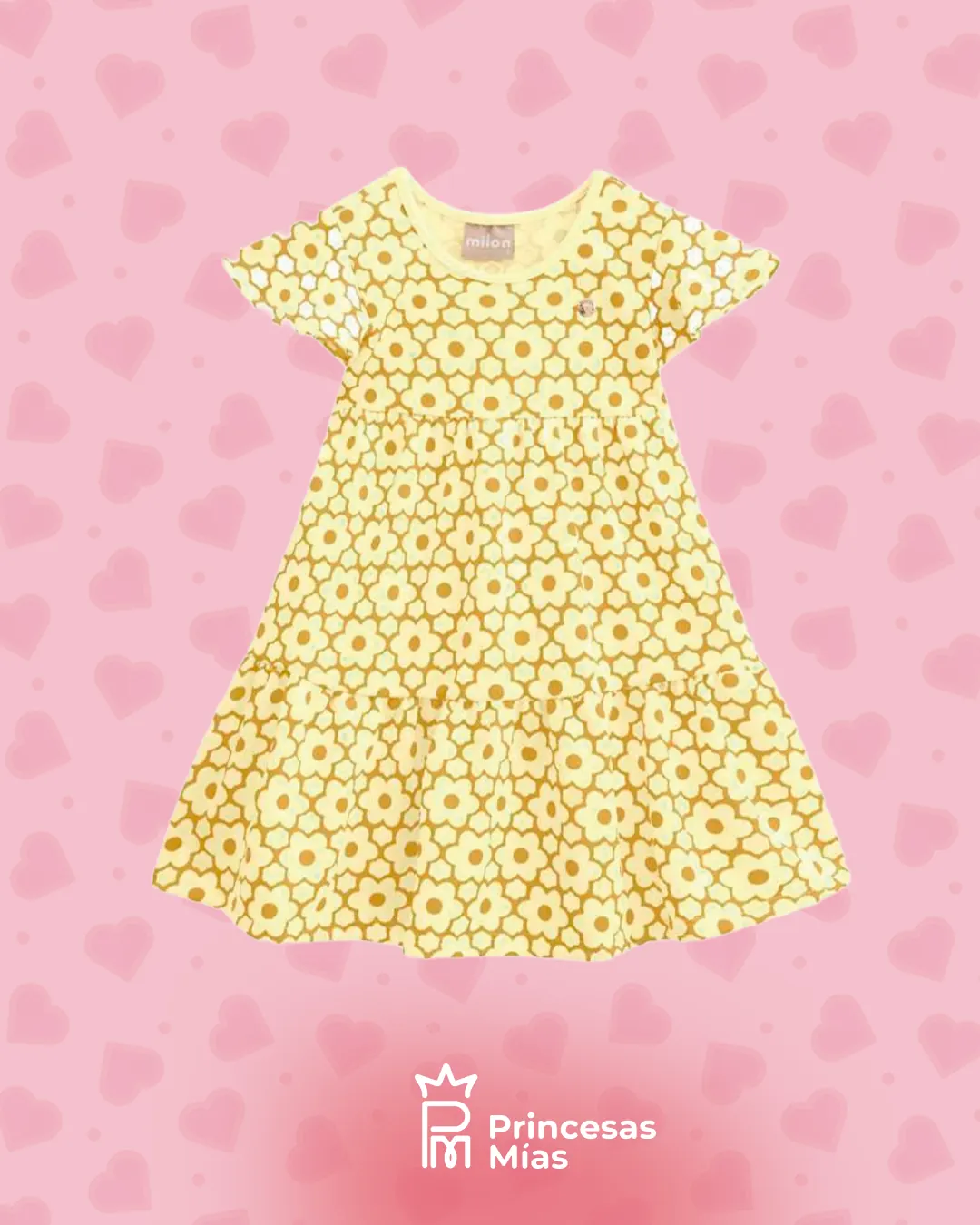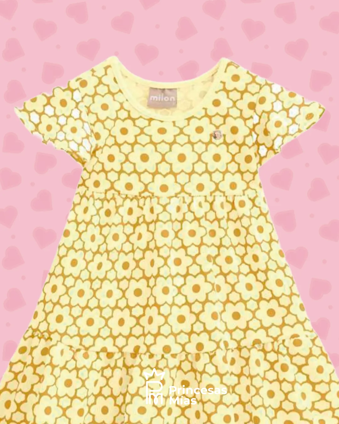 Vestido en punto jersey devoré con estampa de flores amarillas, suave y delicado al tacto. Viene con forro interno 100% algodón, ideal para cuidar la piel sensible de tu bebé y mantenerla fresquita en los días de calor. Con manga corta y faldita con vuelo, es perfecto para que se mueva, juegue y luzca adorable en cualquier ocasión.