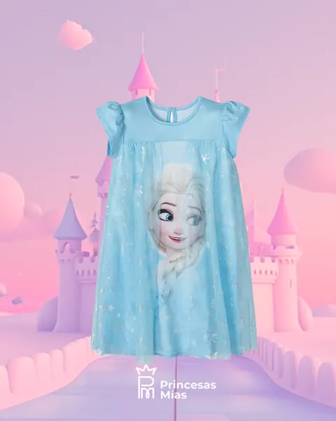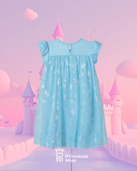 Vestido tipo batola de cuello redondo y manga corta con detalles en tul y tela de poliéster, lo que hace que sea mucho más sencilla de lavar y secar. Cuenta con abertura en cuello posterior para mayor facilidad al usar y estampado de tacto suave en frente que puede presentar variaciones por abastecimiento. Color Azul Composición 97% Poliéster 3% Elastano