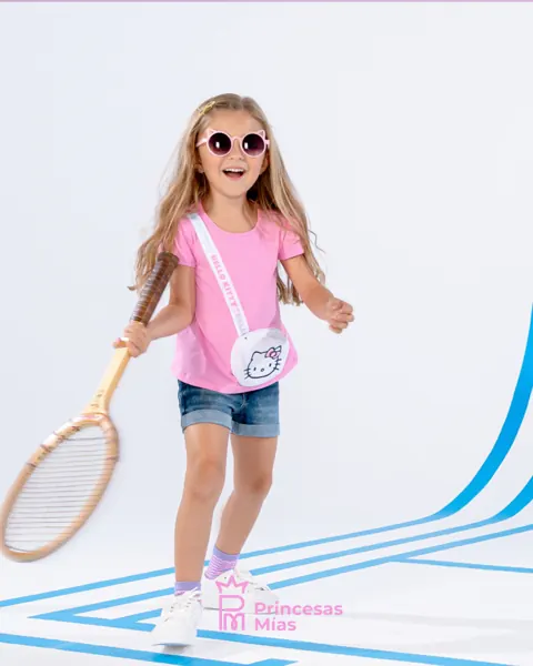 Camiseta para caminador niña. Camiseta cuello redondo, manga corta -tela algodón para mayor frescura y suavidad -recogido en manga,cuello con elongación para facilitar el paso de la cabeza Color: Rosado. Con diseño de Hello kitty. Licencia oficial de Hello kitty. Material: 94% algodón 5% poliéster 1% elastano. Detalle especial: el insumo puede presentar posibles variaciones por abastecimiento,cinta falla sublimada,bordado. Una prenda pensada para la comodidad de los niños.