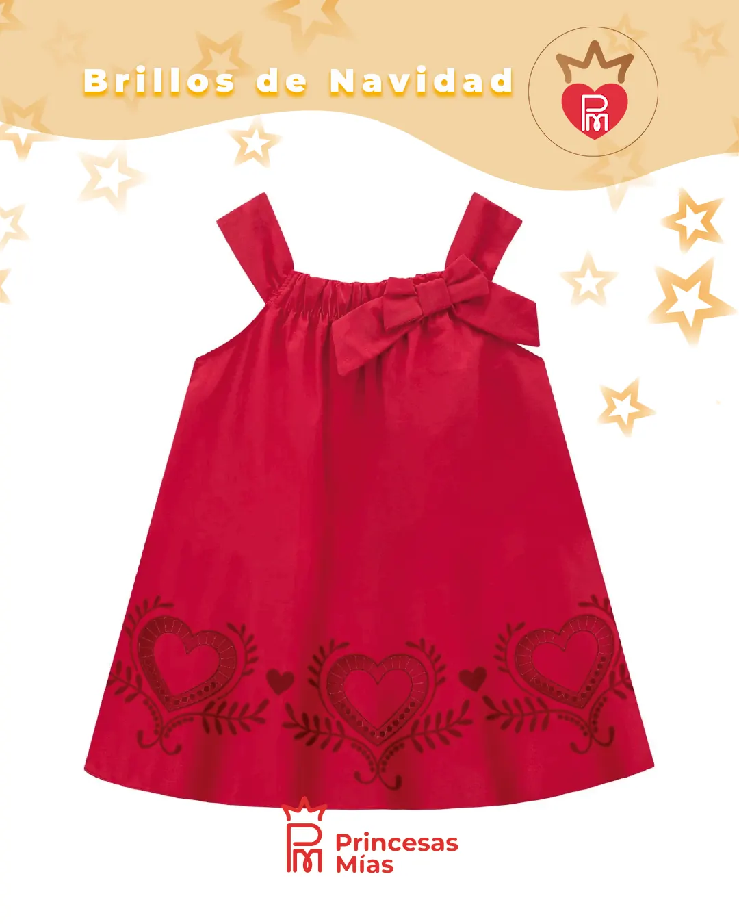 ¡El encanto de Milon para tu pequeña! El vestido infantil Milon está confeccionado en sarga de algodón, lo que le aporta ligereza. Presenta un lazo en el escote y un original bordado calado con corazones en el bajo. Una opción sofisticada con un toque romántico para tu pequeña. Características: Composición: 100 % algodón. Tira. Con detalle de lazo. Costuras suaves. Marca: Milon.