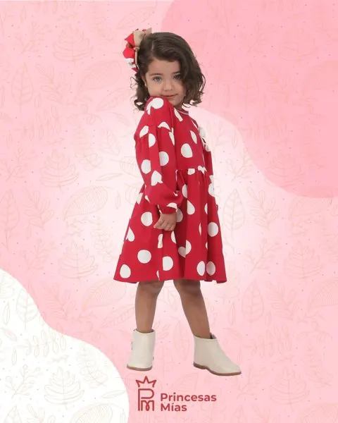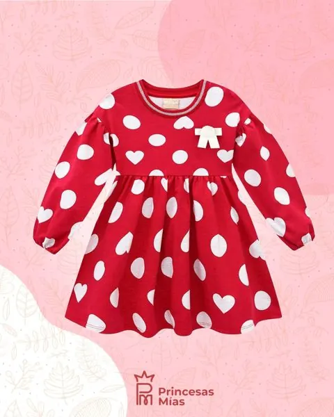 Deja que tu pequeña brille con el estilo dulce y divertido del vestido de Milon. Con un diseño en rojo vibrante, lunares gigantes y corazones que enamoran, esta prenda está pensada para momentos especiales... ¡y para todos los días que merecen una sonrisa!