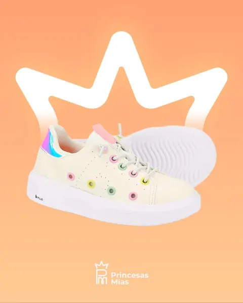 Un toque divertido y delicado para el día a día. Livianos, cómodos y pensados para acompañar cada juego con seguridad. Suela de EVA con tecnología BPlus: ligera y cómoda. Plantilla Fisioflex: sensación suave y confort tipo “caminar descalzo”. Material transpirable y de alto rendimiento. Diseño blanco con detalles multicolor súper combinables. Ideales para uso diario: paseos, cumple, cole y salidas.