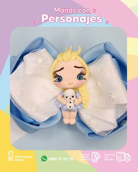 Moño Princesita de Nieve ❄️🩵✨ un lazo soñado en tonos celestes y blanco, con detalles que parecen copitos de nieve y una muñequita tiernísima abrazando a su amiguito de nieve ☃️💙 Perfecto para looks de invierno, sesiones de fotos y momentos donde la dulzura brilla más fuerte 🌨️🎀 Accesorios infantiles hechos a mano con amor, delicadeza y encanto. 💖 ¡Cada lazo lleva cuidado, calidad y un toque especial que transforma cada momento en magia! 🎀