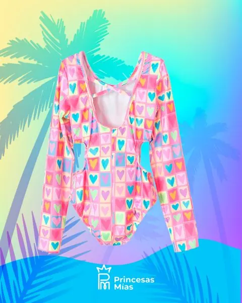 Enterizo de gimnasia para niñas, Corazones manga larga de poliéster 85% spandex 15%, estilo deportivo casual preppy, cuello redondo, tejido de punto, estiramiento medio, estampado corazon, para cumpleaños, fiesta, playa, deportes. 87% Poliéster 13% Elastano. Forro 90% Poliéster 10% Elastano