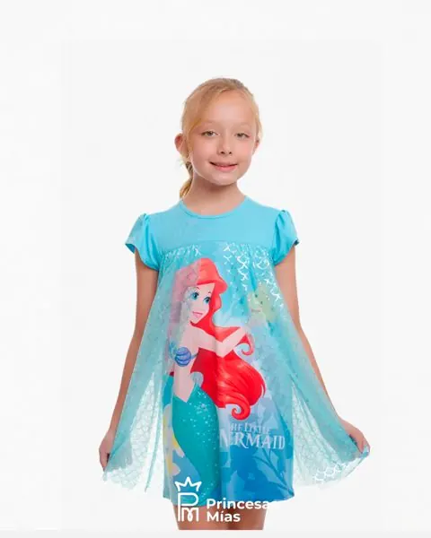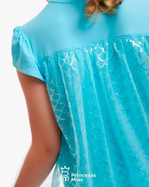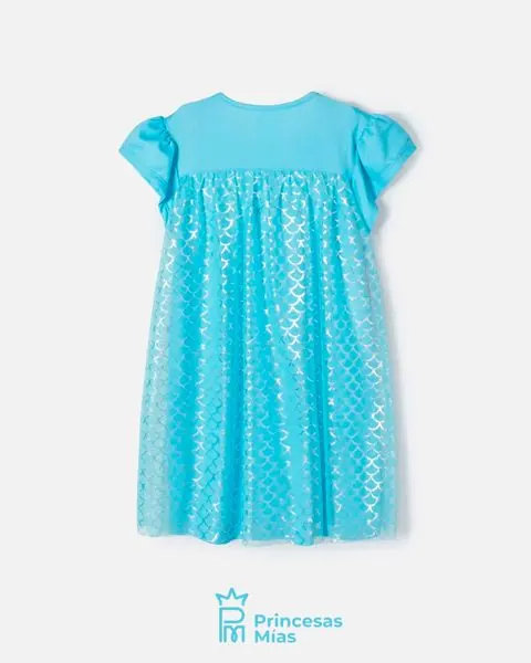 ¡Que los sueños más mágicos cobren vida! Esta pijama con el encanto de Ariel transforma cada noche en una aventura submarina llena de fantasía. Su diseño de batola con estampado de tacto suave hace que tu pequeña se sienta como una verdadera princesa del mar, mientras que su composición en poliéster con elastano garantiza la comodidad perfecta para noches de descanso reparador. - Color: Azul con estampado de Ariel y escamas brillantes - Silueta: Batola con falda amplia y manga corta - Fit: Regular fit cómodo para libertad de movimiento - Estampado: Tacto suave con detalles brillantes que no se desgastan - Diseño: Torso liso con falda estampada allover de escamas de sirena. 97% poliéster 7% Elastano