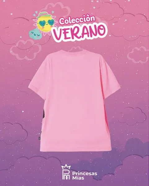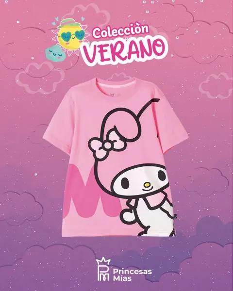 Cuando los estilos más tiernos se unen con los más cómodos y prácticos, ¡el resultado es esta camiseta! Su diseño permitirá que tu pequeña se mueva libremente y con confianza, mientras que el toque especial de My Melody & Kuromi le dará la seguridad que necesita para seguir siendo la niña más cool y divertida en cualquier ocasión. ¿Lista para ver cómo tu hija es la que más brilla? Diseño:Camiseta de manga corta y cuello redondo en rib elástico que facilita el paso de la cabeza. Confeccionada en algodón para mayor frescura, suavidad y comodidad. Además, lleva un estampada en el frente con apliques de mirella. Composicion 99% Algodón 1% Elastano