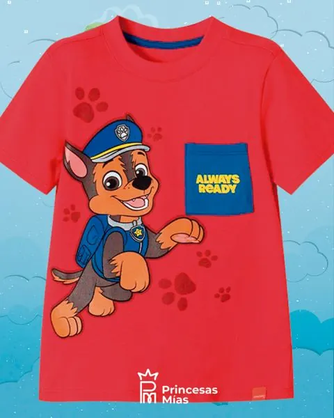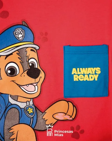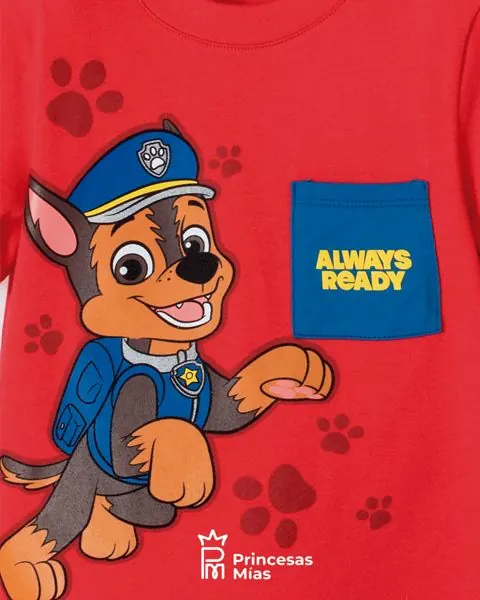 Camiseta para caminador niño. Camiseta cuello redondo, manga corta -tela algodón para mayor frescura y suavidad,cuello en rib para mayor comodidad -bolsillos funcionales,cuello con elongación para facilitar el paso de la cabeza Color: Rojo. Con diseño de Paw patrol. Licencia oficial de Paw patrol. Material: 99% algodón 1% elastano. Detalle especial: estampado en alta densidad. Estilo y confort para los más pequeños de casa.