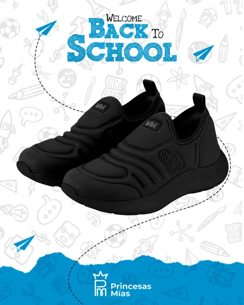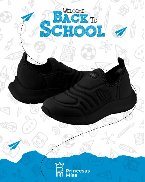 Súper práctico, flexible y cómodo para el uso diario El Tenis Bibi Action infantil es uno de esos modelos que se vuelven favoritos desde el primer uso 🖤✨ Diseñado para acompañar a los peques en todas sus aventuras, es un tenis versátil, cómodo y fácil de calzar, ideal para el día a día, el cole y actividades donde necesitan moverse con total libertad. Su diseño en negro total lo hace perfecto para uniformes escolares y para combinar con cualquier outfit, manteniéndose siempre prolijo y elegante. Además, está fabricado en material elastano, que se adapta suavemente al pie y permite una mejor transpiración. ✅ Características principales Marca: Bibi Línea/Modelo: Action Tipo: Tenis infantil / Escolar / Deportivo urbano Color: Negro total Material exterior: Elastano (respirable, flexible y fácil de limpiar) Calce: Slip-on (sin cordones) – práctico y rápido Suela: EVA (liviana y flexible) Plantilla: Fisioflex (comodidad premium)