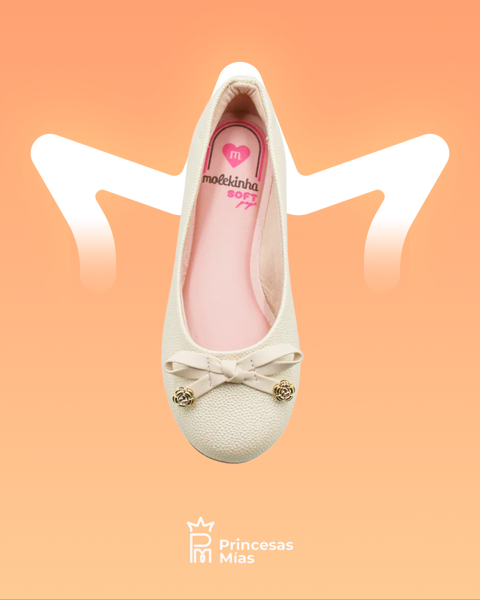 Un modelo clásico y encantador que nunca pasa de moda. Esta chatita nude de Molekinha destaca por su delicado moño con herrajes dorados en la puntera y su textura elegante. Ideal para combinar con vestidos, faldas o conjuntos formales, aportando estilo y dulzura a cada paso. Características principales: Marca: Molekin Color: Nude / Champagne claro Diseño: Chatita clásica con moño decorativo. Detalles: Aplicaciones metálicas doradas en el moño Material exterior: Sintético texturizado Forro: Interior suave y respirable Suela: Flexible y antideslizante