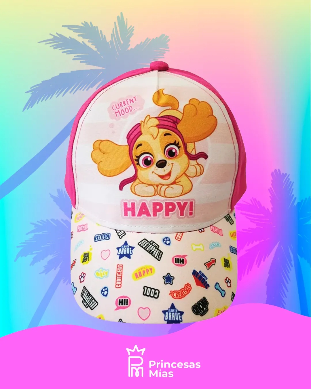 Alegría, color y ternura en un solo accesorio ✨ Esta gorra infantil en tonos fucsia y rosado es perfecta para sumar un toque divertido y encantador a cualquier look. Su diseño protagonista muestra una perrita súper feliz con la frase “HAPPY!” y el detalle “Current Mood”, ideal para pequeñas que aman los accesorios con personalidad. La visera estampada con íconos y dibujitos coloridos (huellitas, huesitos y palabras divertidas) le da ese estilo juguetón que hace que destaque desde cualquier ángulo. Es una opción adorable para días de sol, paseos, vacaciones y salidas en familia. Detalles del diseño Color principal fucsia/rosado vibrante. Panel frontal con ilustración tierna y mensaje “HAPPY!”. Visera estampada con motivos infantiles multicolor. Estilo alegre, moderno y súper combinable.