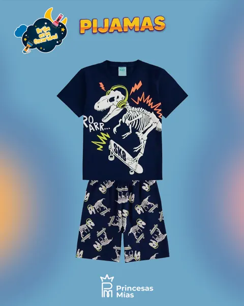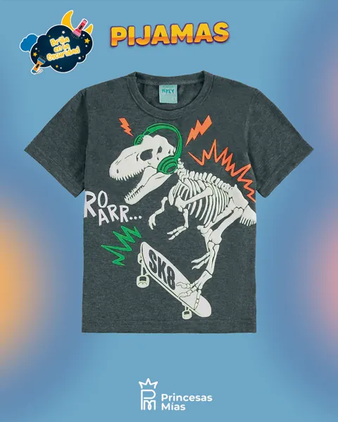 La pijama Kyly para niño consta de una camiseta y un pantalón corto de punto jersey. La camiseta Kyly para niño tiene un corte clásico y un estampado de dinosaurio en la parte delantera con detalles en relieve que brillan en la oscuridad. Los pantalones cortos Kyly para niño tienen un estampado integral a juego con la camiseta y una cómoda cinturilla elástica.