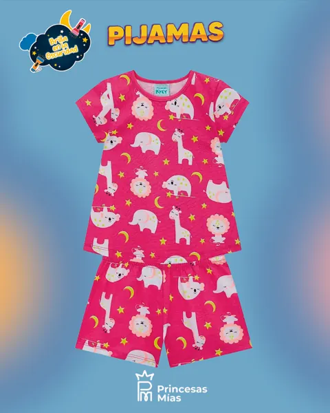 Pijama con animalitos y efecto glow. Suave, cómodo y hermoso para noches de verano. Descripción completa: Set de 2 piezas con diseño lleno de ternura (animalitos, estrellitas y lunas) y detalles que brillan en la oscuridad. Tela suave al tacto y calce cómodo para descansar feliz. Detalles: Set 2 piezas Detalles con efecto glow Cintura elástica Ideal para calor