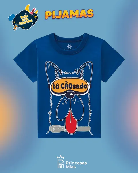 ¡Hora de dormir con humor! Este pijama Brandili viene en conjunto de remera manga corta y short, con un diseño divertido de perrito con antifaz y la frase “tô cãosado” (¡estoy cansadito!). Ideal para noches frescas o para estar cómodo en casa. Detalles del producto Marca: Brandili Tipo: Pijama infantil 2 piezas Parte superior: Remera azul manga corta, cuello redondo Estampa frontal: Perrito con antifaz + frase “tô cãosado” (estilo caricatura, súper llamativa) Parte inferior: Short gris melange con estampado de caritas/perritos y detalles en colores Calce: Cómodo, pensado para moverse y dormir sin molestar