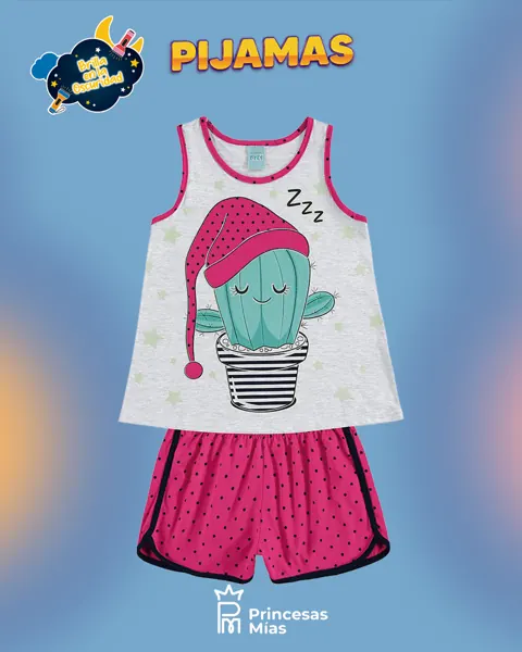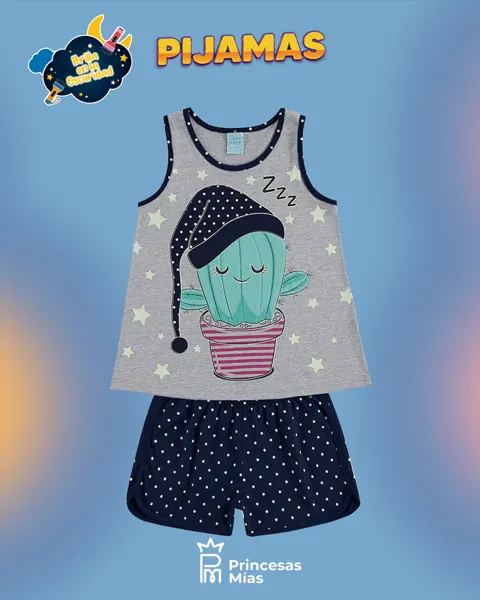 Con un adorable estampado, la pijama Kyly Cactus Junior garantiza comodidad para el descanso. Hecha de algodón, incluye una camiseta sin mangas y un pantalón corto. ¡Tu pequeña siempre lucirá hermosa y se sentirá cómoda! Brilla en la Oscuridad.