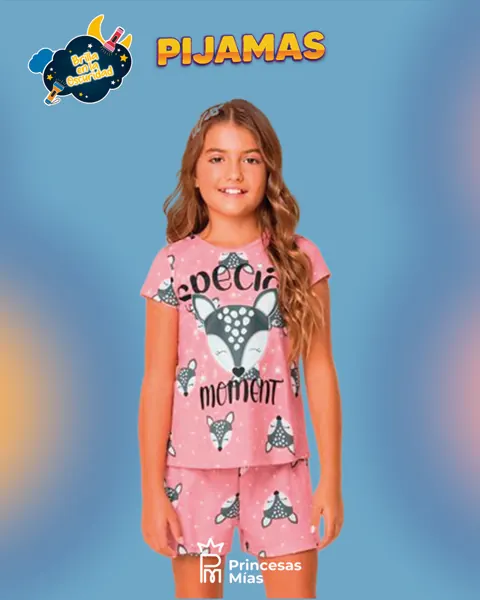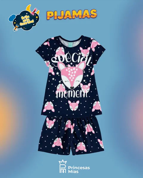 El clásico más dulce: estampa de bambi con estrellitas y el mensaje “Special Moment”. Viene en rosa o azul marino, ideal para elegir según el estilo de tu peque. Súper cómodo para dormir y descansar, con un detalle que enamora: brilla en la oscuridad ✨ Detalles: Conjunto 2 piezas: remera + short Estampa “Special Moment” + bambi Glow: brilla en la oscuridad ✨ Cintura elástica