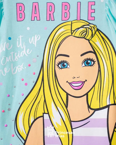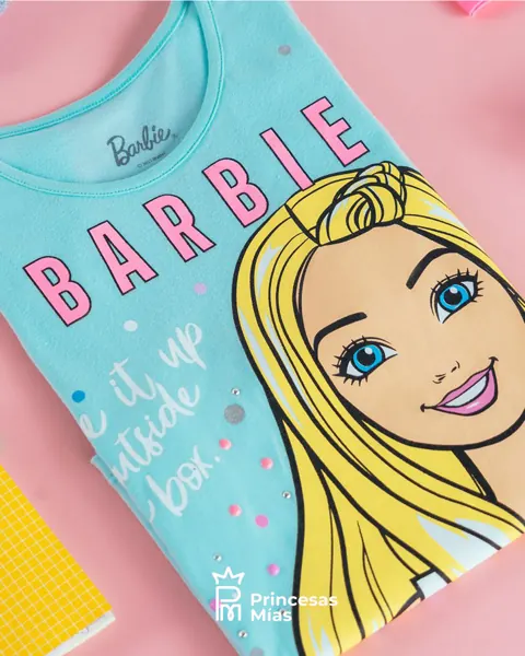 ¡Sé lo que quieras ser! Una colección para que todas las niñas valientes y extrovertidas dejen volar su imaginación. Con este diseño tu pequeña estará lista para cumplir todos sus sueños como su mejor amiga, Barbie. Con manga corta para más comodidad y un estampado que combinará con todo. 99% Algodón 1% Elastano