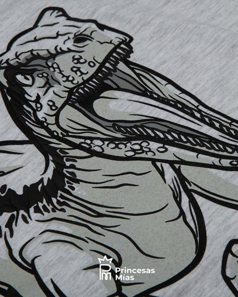 emera gris jaspeada con impactante estampado de dinosaurio tipo raptor, ideal para fanáticos del mundo jurásico. Inspirada en la saga Jurassic World, es una prenda fresca y con mucha personalidad. Características / Beneficios destacados: Estampado frontal de gran tamaño con diseño realista. Logo oficial de Jurassic World impreso en naranja. Cuello redondo reforzado, costuras resistentes. Tela suave y fresca ideal para el uso diario. Perfecta para aventuras cotidianas con estilo. Material: 100% algodón Colores disponibles: Gris jaspeado con detalles en negro y naranja