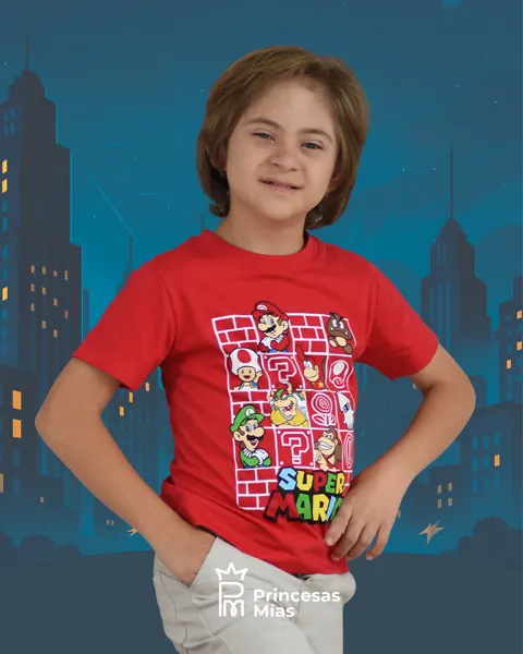 Remera de algodón con estampado completo de los personajes de Super Mario, ideal para niños fanáticos del mundo gamer. Beneficios / Características: Estampado de alta calidad con personajes clásicos como Mario, Luigi, Bowser y más. Tejido suave, fresco y cómodo para el uso diario. Corte clásico, fácil de combinar con jeans o shorts. Diseño vibrante que no pasa desapercibido. Materiales: 100% algodón suave al tacto. Colores disponibles: Rojo con detalles multicolor.
