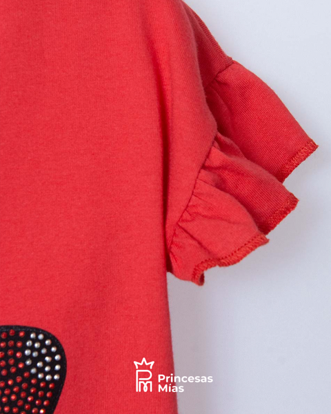 Surprise! No habrá mejor compañera que esta linda ratona para esas tardes soleadas llenas de risas. Con cuello redondo y manga corta, esta camiseta será perfecta para todas las aventuras del día, además su detalle de voleros en las mangas le dará un toque único a cualquier look. 99% Algodón 1% Elastano