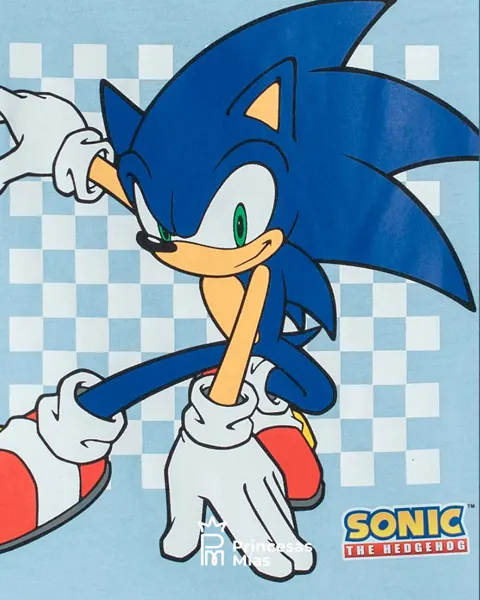 Remera infantil con estampado frontal de Sonic, el erizo más rápido y divertido del mundo. Perfecta para niños con espíritu aventurero y fanáticos de los videojuegos clásicos. Características / Beneficios destacados: Color azul cielo vibrante y alegre. Estampado de Sonic con fondo cuadriculado de estilo retro. Cuello redondo reforzado y manga corta. Tela fresca y suave al tacto, ideal para todo el día. Corte recto que se adapta a distintos tipos de cuerpo infantil. Material: 100% algodón