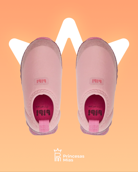 Un diseño dulce y lleno de brillo para acompañar cada paso con estilo y comodidad. Estos tenis color rosa pastel están confeccionados con materiales suaves y flexibles que se ajustan fácilmente al pie. El toque especial está en su puntera con acabado glitter y su suela con cápsulas de luces que se encienden al caminar, ¡pura diversión para las pequeñas! Características destacadas: Diseño liso con detalles brillantes en la puntera. Suela con luces LED que se activan con el movimiento. Slip-on: diseño sin cordones, fácil de colocar. Material elástico que ofrece ajuste y confort. Plantilla Fisioflex® que imita la sensación de caminar descalza. Suela de goma liviana y antideslizante. Un diseño dulce y lleno de brillo para acompañar cada paso con estilo y comodidad. Estos tenis color rosa pastel están confeccionados con materiales suaves y flexibles que se ajustan fácilmente al pie. El toque especial está en su puntera con acabado glitter y su suela con cápsulas de luces que se encienden al caminar, ¡pura diversión para las pequeñas! Características destacadas: Diseño liso con detalles brillantes en la puntera. Suela con luces LED que se activan con el movimiento. Slip-on: diseño sin cordones, fácil de colocar. Material elástico que ofrece ajuste y confort. Plantilla Fisioflex® que imita la sensación de caminar descalza. Suela de goma liviana y antideslizante.