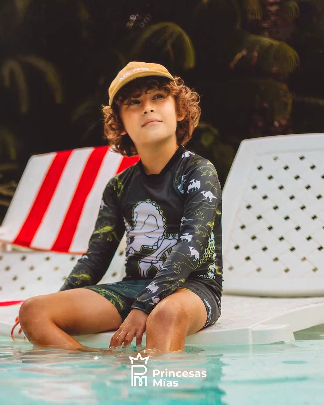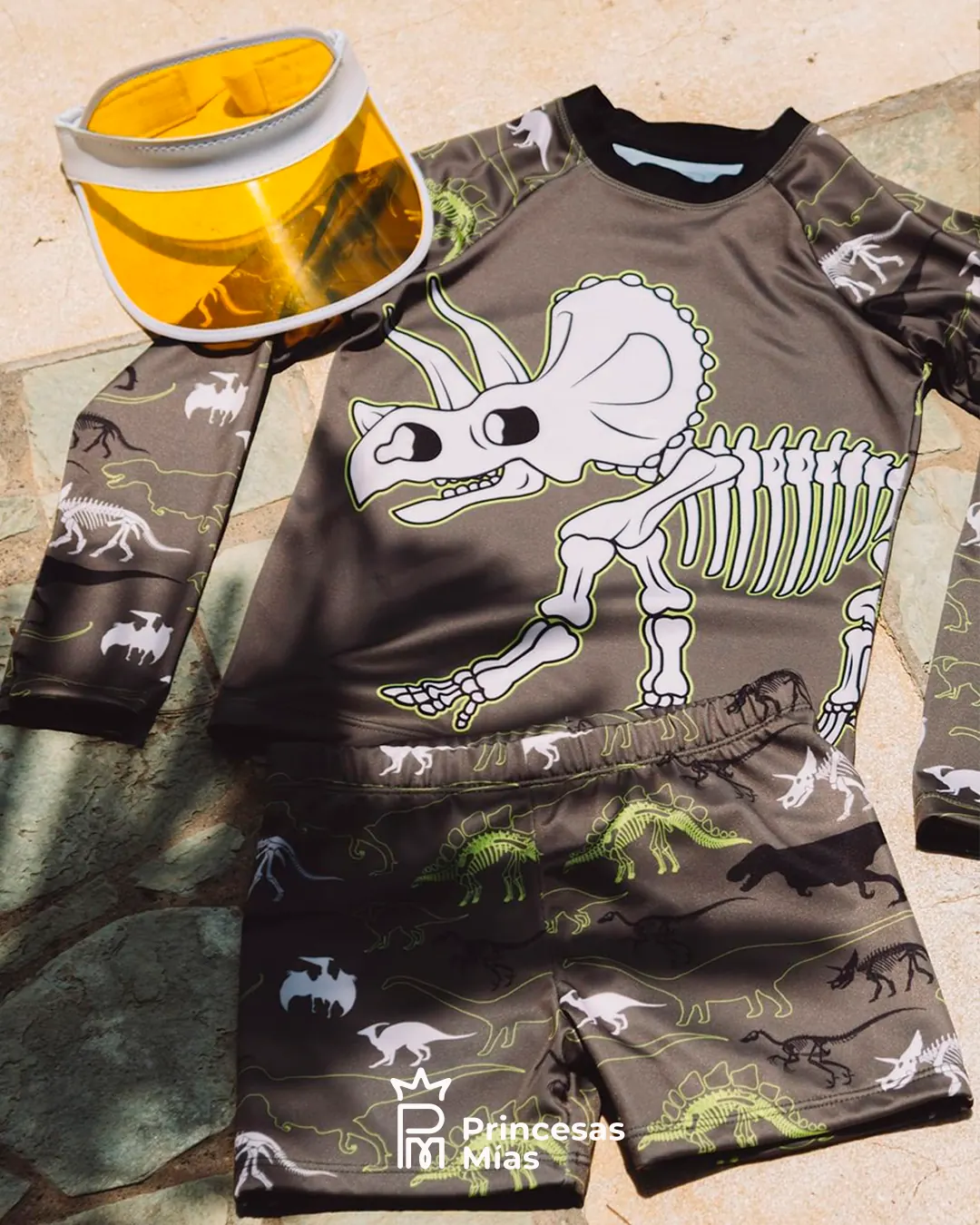 Conjunto de Baño de Jurassic World verde para niño. Juego de Dos piezas con Proteccion Solar UV50.