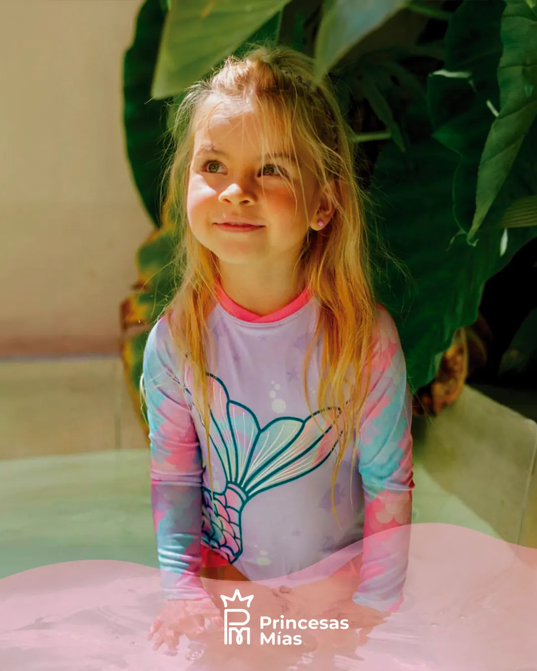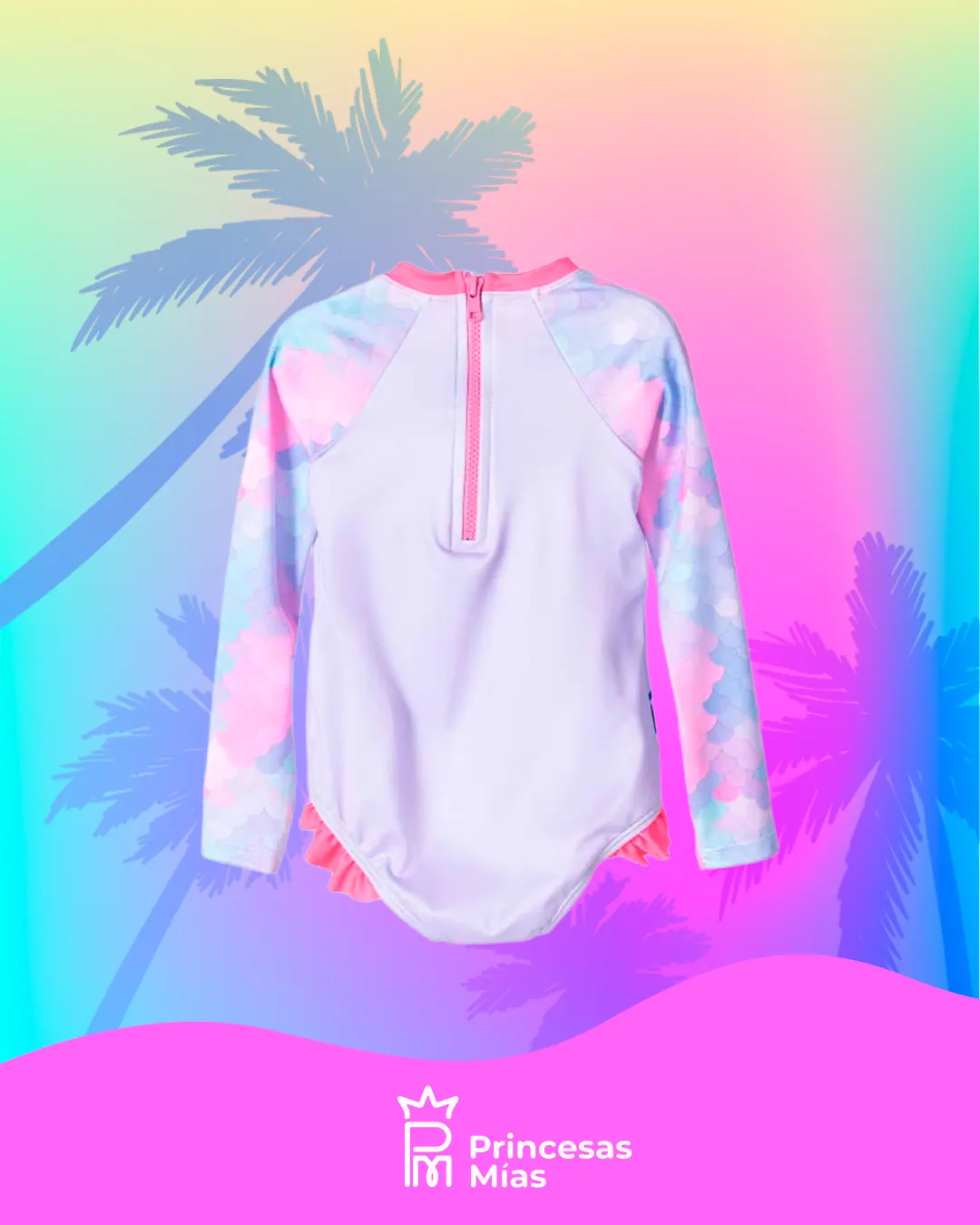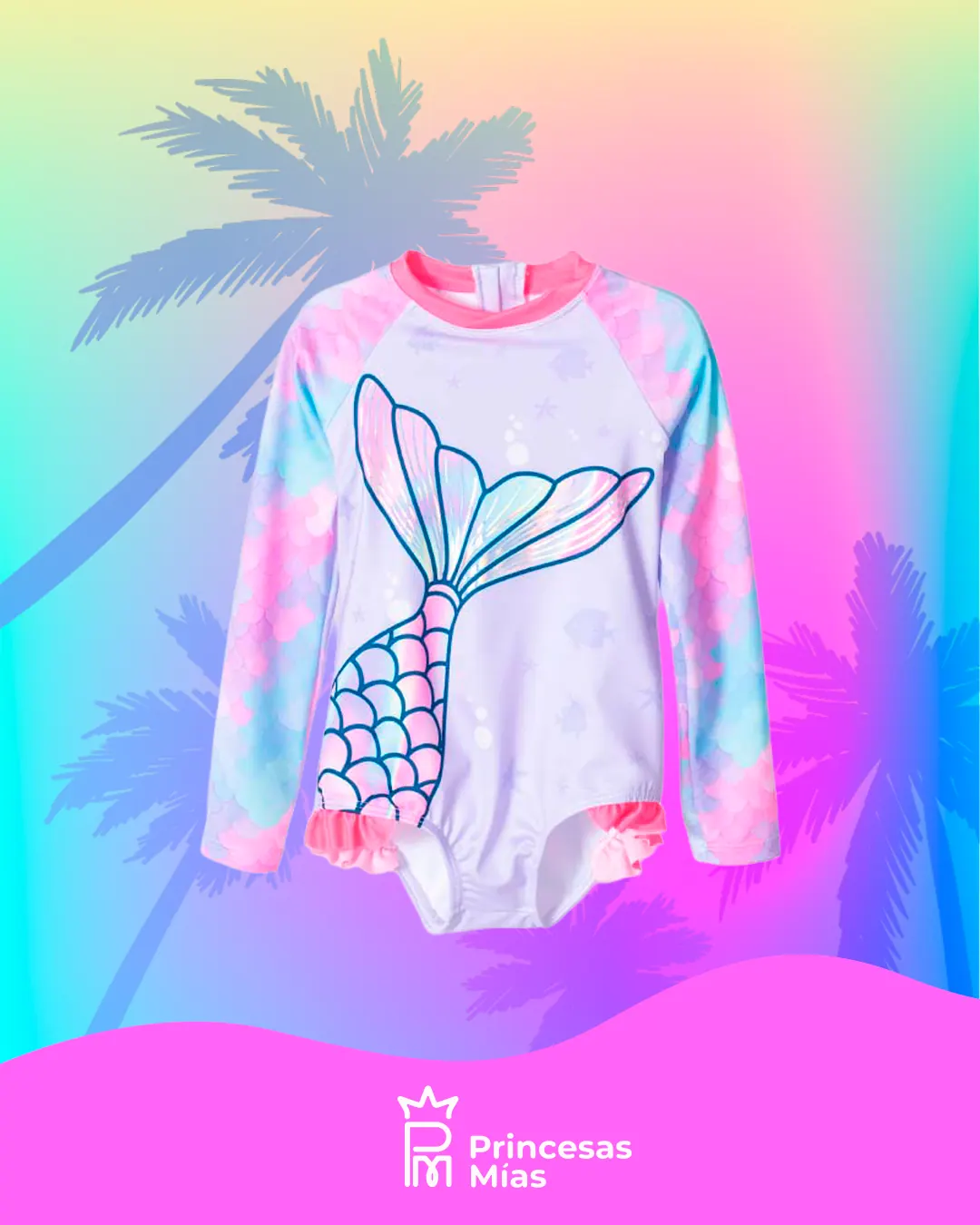 ¡Historias bajo el mar! Los días de sol harán que tu pequeña no vea la hora de disfrutar y querer lucir espectacular con este diseño tan tierno y precioso. Su estilo manga larga con ajuste de cierre en espalda le dará la protección que necesita para sus vacaciones de verano. Además, tiene mini boleros en pierna que le dan un toque fantástico, mientras que su estampado te dejará sin palabras.