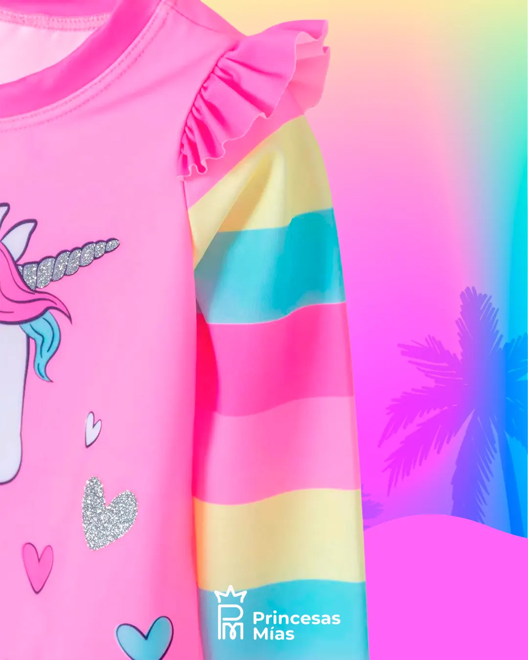 Criaturas fantásticas que siempre le dan un toque mágico a los días de tu pequeña, ¡en qué más podemos pensar si no son lo unicornios! Prepárate porque con este vestido de baño, tu consentida no querrá salir del agua jamás. Su diseño en dos piezas es perfecto para disfrutar de una comodidad única, mientras juega en parques y toboganes. Cuenta con detalles de mini boleros que harán de este conjunto, una opción tierna y encantadora, y además, sus estampados coloridos y apliques con brillo, difícilmente, pasarán desapercibidos. ¡Haz que tu pequeña sea la mejor vestida en los planes de verano!