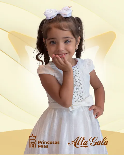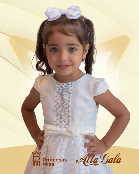 Este vestido blanco de gala es la definición de elegancia y dulzura. Confeccionado en un delicado tejido texturizado, se destaca por sus apliques de perlas en el frente que aportan brillo y distinción. La falda con caída natural ofrece volumen y movimiento, mientras que el lazo satinado en la cintura acentúa la silueta con un toque de encanto. Las mangas cortas con volados realzan el estilo clásico, convirtiéndolo en una opción ideal para ceremonias, cortejos, celebraciones y sesiones de fotos inolvidables. Material principal: Tejido texturizado de alta calidad con forro interno suave Diseño: Corte princesa Apliques de perlas brillantes en el frente Lazo satinado blanco en la cintura Mangas cortas abullonadas con acabado delicado Cierre posterior oculto para un ajuste cómodo