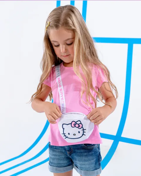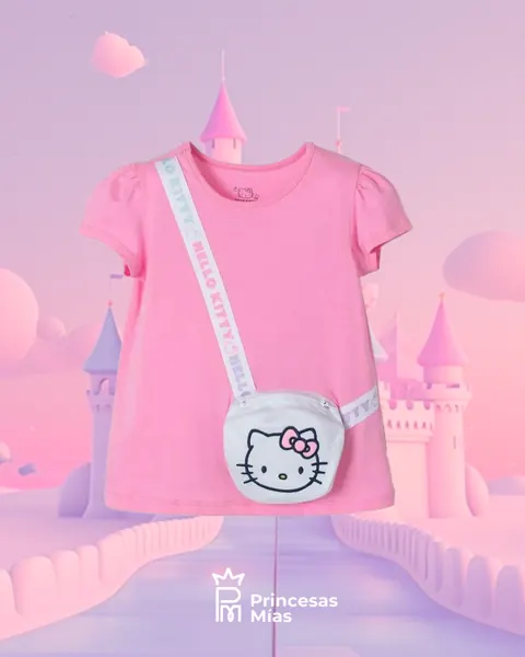 Camiseta para caminador niña. Camiseta cuello redondo, manga corta -tela algodón para mayor frescura y suavidad -recogido en manga,cuello con elongación para facilitar el paso de la cabeza Color: Rosado. Con diseño de Hello kitty. Licencia oficial de Hello kitty. Material: 94% algodón 5% poliéster 1% elastano. Detalle especial: el insumo puede presentar posibles variaciones por abastecimiento,cinta falla sublimada,bordado. Una prenda pensada para la comodidad de los niños.