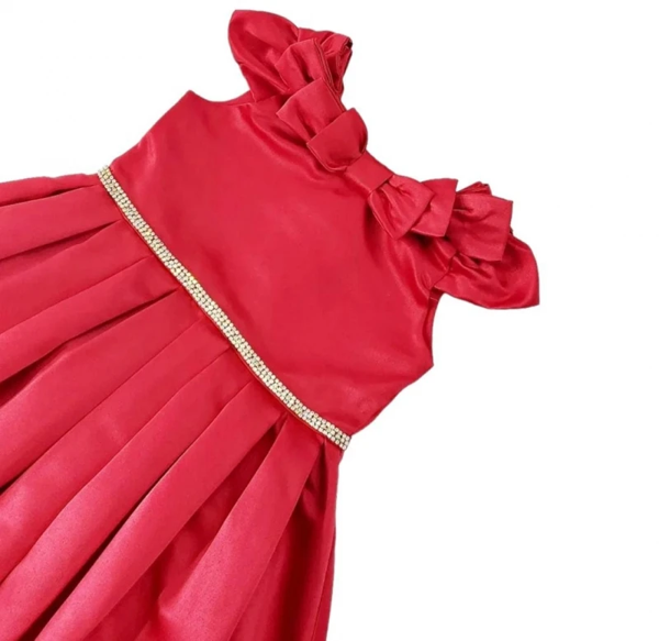 Un vestido rojo intenso, lleno de brillo y movimiento, para que tu princesa viva la magia con elegancia y mucha comodidad. Este vestido rojo de gala está pensado para esos momentos en los que tu pequeña es la protagonista: Fiestas, cumpleaños, actos y fotos familiares. El color rojo, símbolo de amor, alegría y unión familiar, hace que cada aparición sea especial y llena de emoción. El diseño trae un delicado lazo en el escote y una falda amplia con vuelo, que gira hermoso cuando ella camina o baila. El cintito con brillo en la cintura aporta un toque de luz y sofisticación, sin perder la ternura infantil. El tejido tiene un acabado satinado, suave al tacto y con buena estructura, para que el vestido mantenga su forma y se vea impecable en todo momento. Combinado con nuestros calzados, moños, vinchas y accesorios de Princesas Mías, podés lograr un look completo de alta gala, perfecto para fotos navideñas, reuniones familiares y cualquier celebración especial. Ficha técnica Marca: Selección exclusiva Princesas Mías - Petit Cherie Modelo: Vestido rojo de gala con lazo y brillo en cintura. Tipo de prenda: Vestido infantil de fiesta / alta gala. Color: Rojo Navidad Tela: Tejido con acabado satinado, suave y con cuerpo. Composición: Según etiqueta del producto. Detalles de diseño: Escote redondo con lazo decorativo. Mangas cortas tipo alita/cap. Cintura con aplique de brillo (tipo strass). Falda amplia con vuelo, largo a la rodilla.