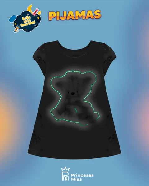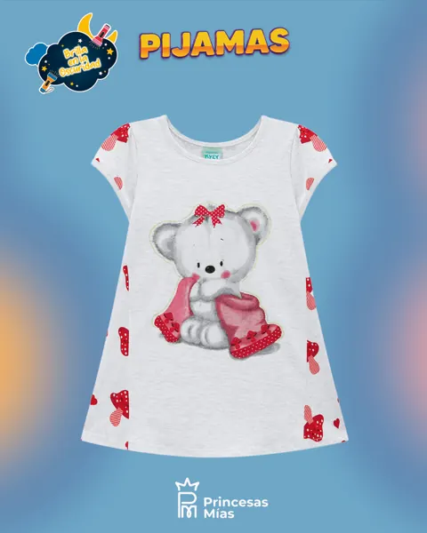 Dulce, cómodo y perfecto para dormir fresquita ✨ Nuestro vestido pijama es ideal para las peques que aman sentirse libres al descansar. Viene en tono claro con detalles rojos y una osita súper tierna al frente… ¡y además brilla en la oscuridad para hacer la noche más mágica! ⭐ Detalles Tipo: Vestido pijama (una sola pieza) Manga corta y corte sueltito: comodidad total para dormir y jugar en casa Estampa central de osita + detalles rojos tipo moñitos/corazones Brilla en la oscuridad: cargá el brillo con luz y listo 🌟 Ideal para verano: livianito y fresco