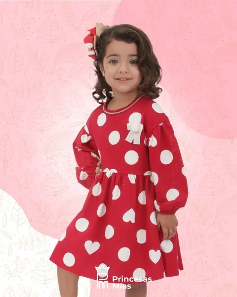 Deja que tu pequeña brille con el estilo dulce y divertido del vestido de Milon. Con un diseño en rojo vibrante, lunares gigantes y corazones que enamoran, esta prenda está pensada para momentos especiales... ¡y para todos los días que merecen una sonrisa!